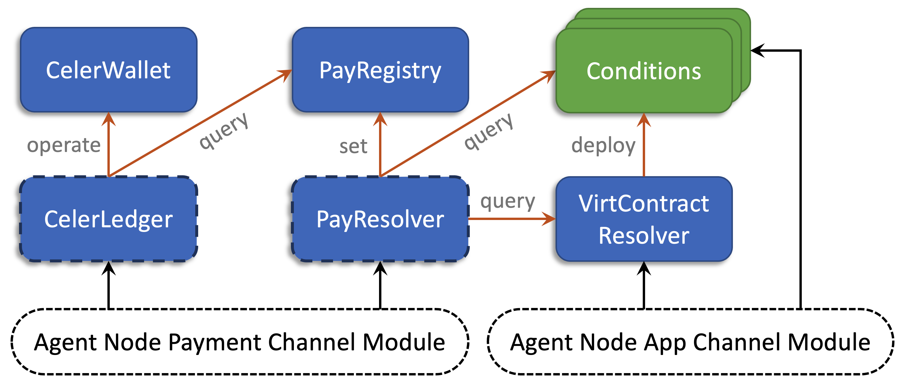 This section describes the core structure of the Celer AgentPay generalized state-channel system, its on-chain contract design, and the API flows for on-chain operations.